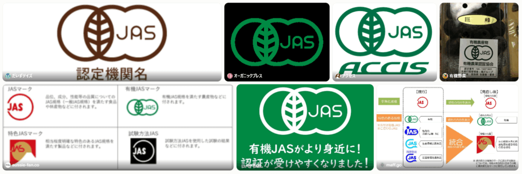 • この認証は「生産工程管理」を重視しており、農薬や化学肥料を使わずに育てた農産物や、大切な原料を使った加工食品に与えられます。