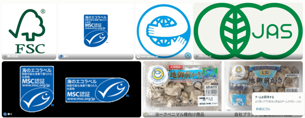 これらのマークは持続可能性や環境保護の基準をクリアした製品に付けられています。