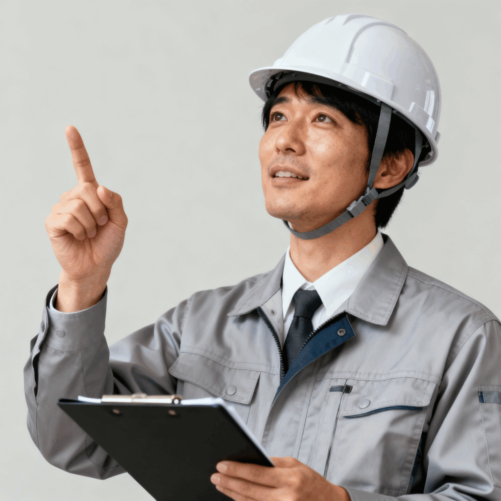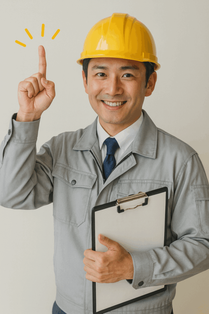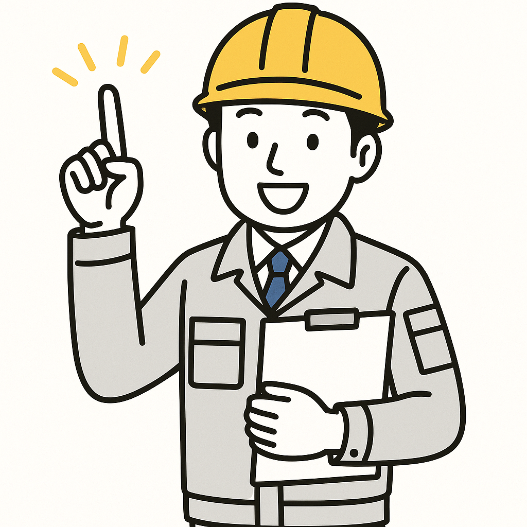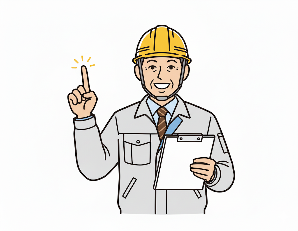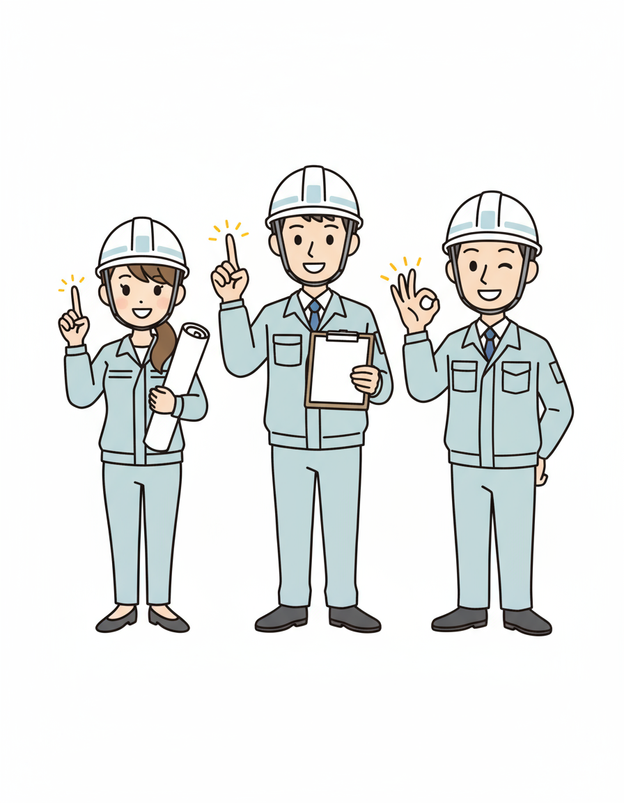 元のイラストの「指差しポーズ」や「OKサイン」、「ヘルメットを被った作業着姿」といった特徴を捉えつつ、著作権に配慮した新しいイラストを作成します。